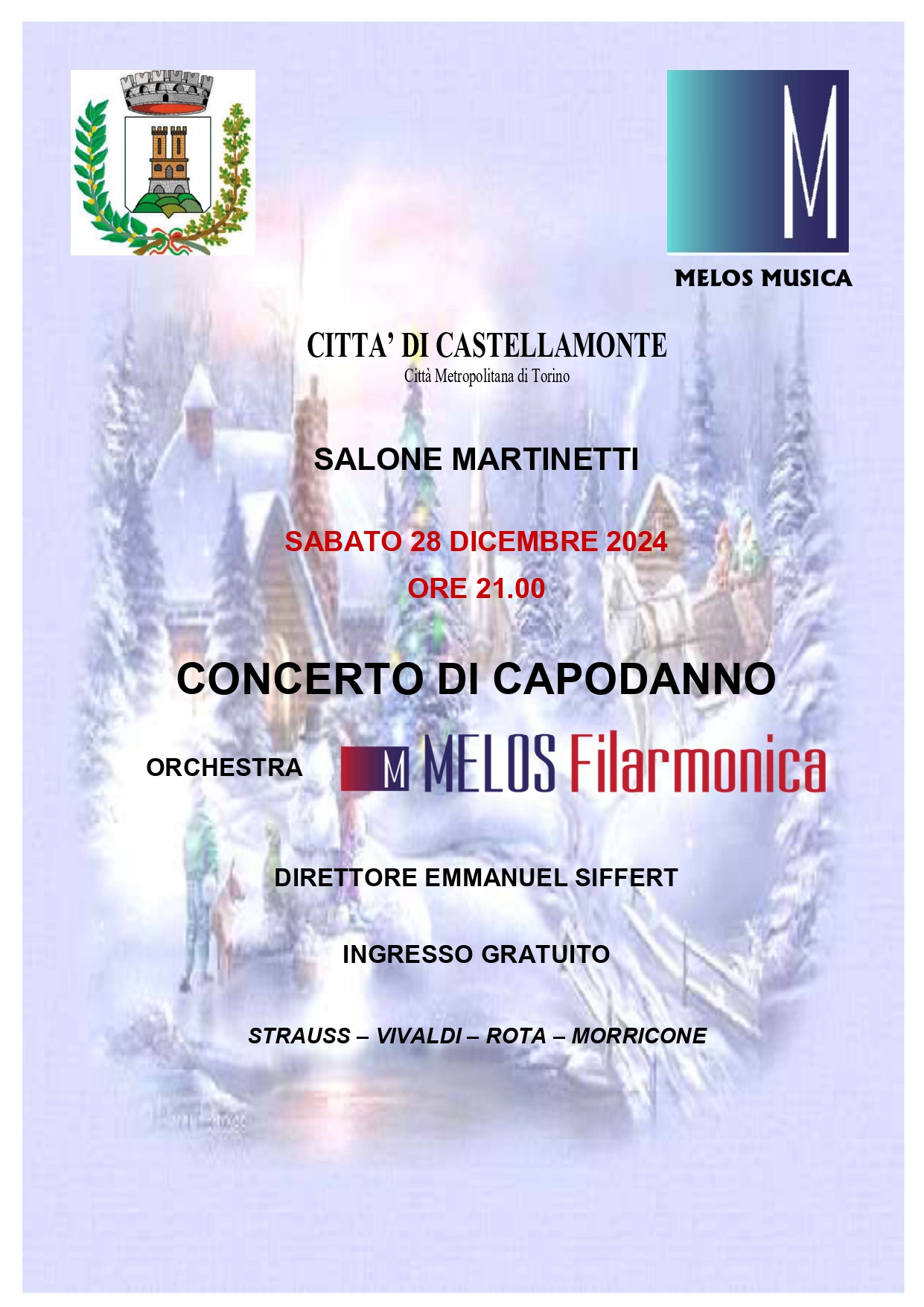 Orchestra Melos Filarmonica - Direttore Emmanuel Siffert - Sabato 28 dicembre 2024 alle ore 21,00 Centro Congressi "PIero Martinetti" - Ingresso gratuito.