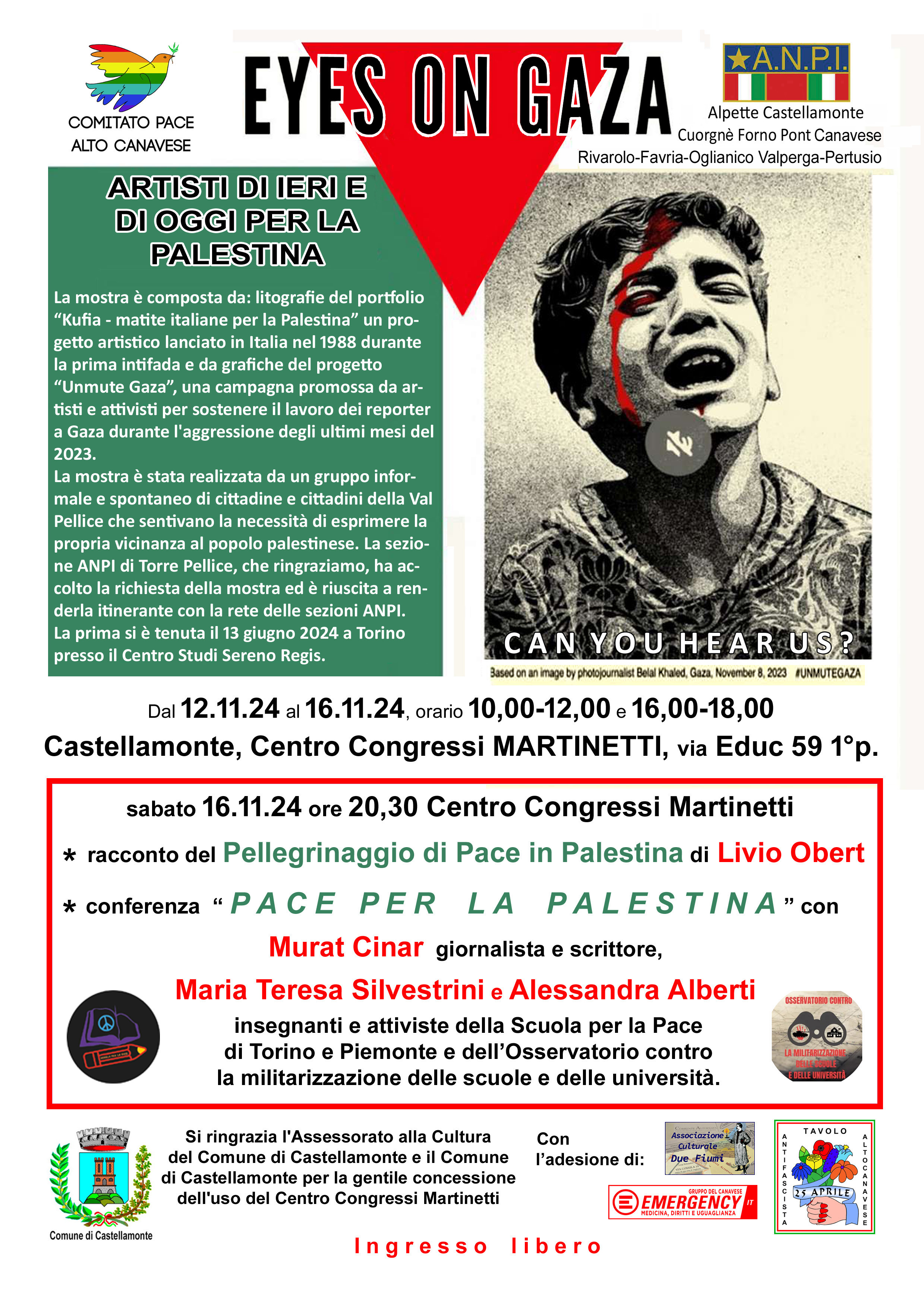 Mostra "Artisti di ieri e di oggi per la Palestina." dal 12 al 16 novembre 2024 - Sabato 16/11/2024 ore 20.30 Centro Congressi Piero Martinetti: Racconto del "Pellegrinaggio di Pace in Palestina" di Livio Obert - Conferenza "Pace per la Palestina"