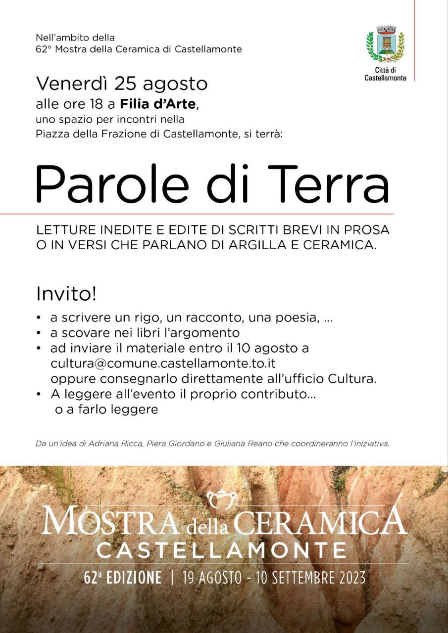 Letture inedite e edite di scritti brevi in prosa o in versi che parlano di argilla e ceramica - INVITO a scrivere a: cultura@comune.castellamonte.to.it