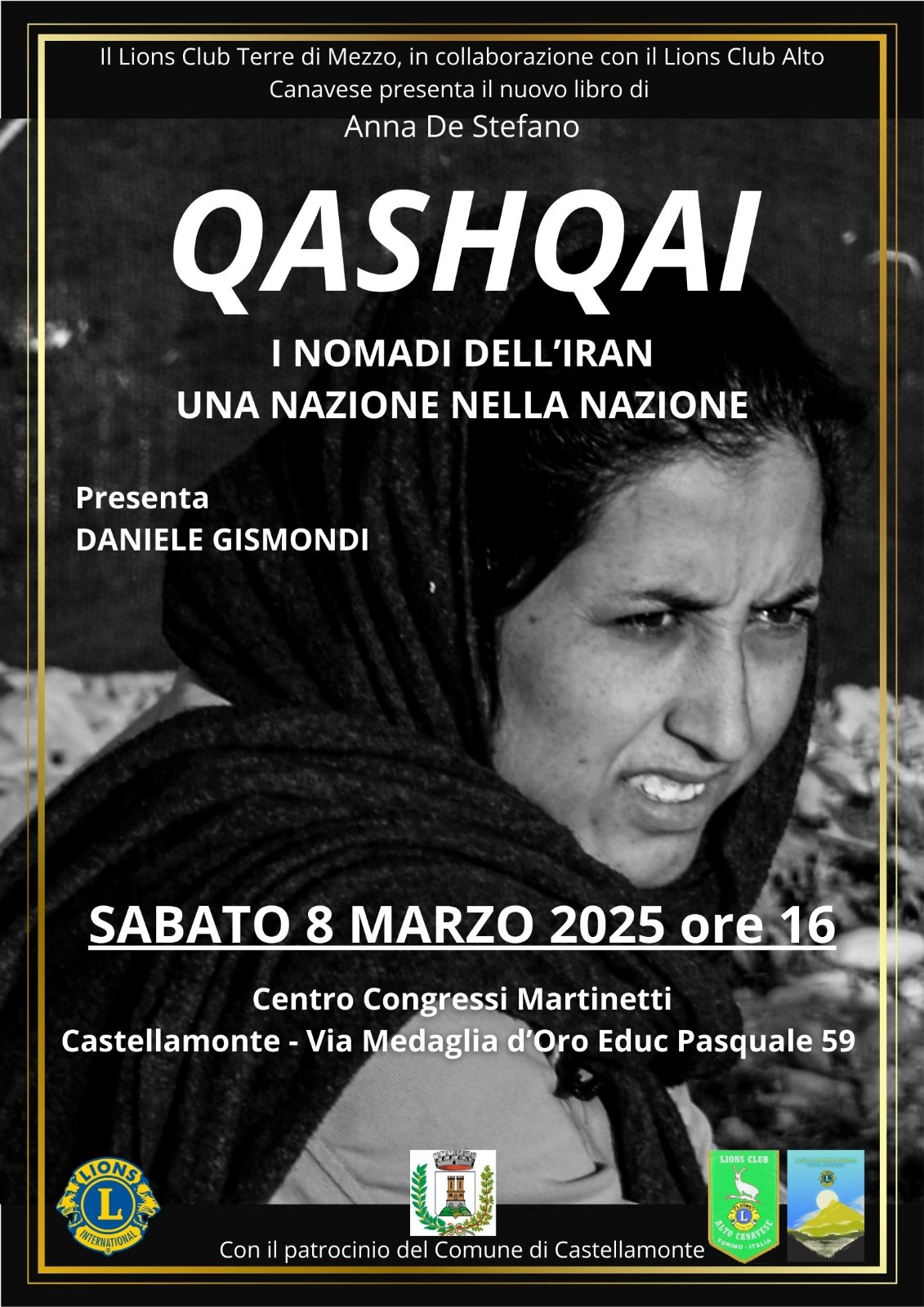 Il Lions Club Terre di Mezzo, in collaborazione con il Lions Club Alto Canavese e il patrocinio del Comune di Castellamonte presenta il nuovo libro di Anna De Stefano "QASHQAI"