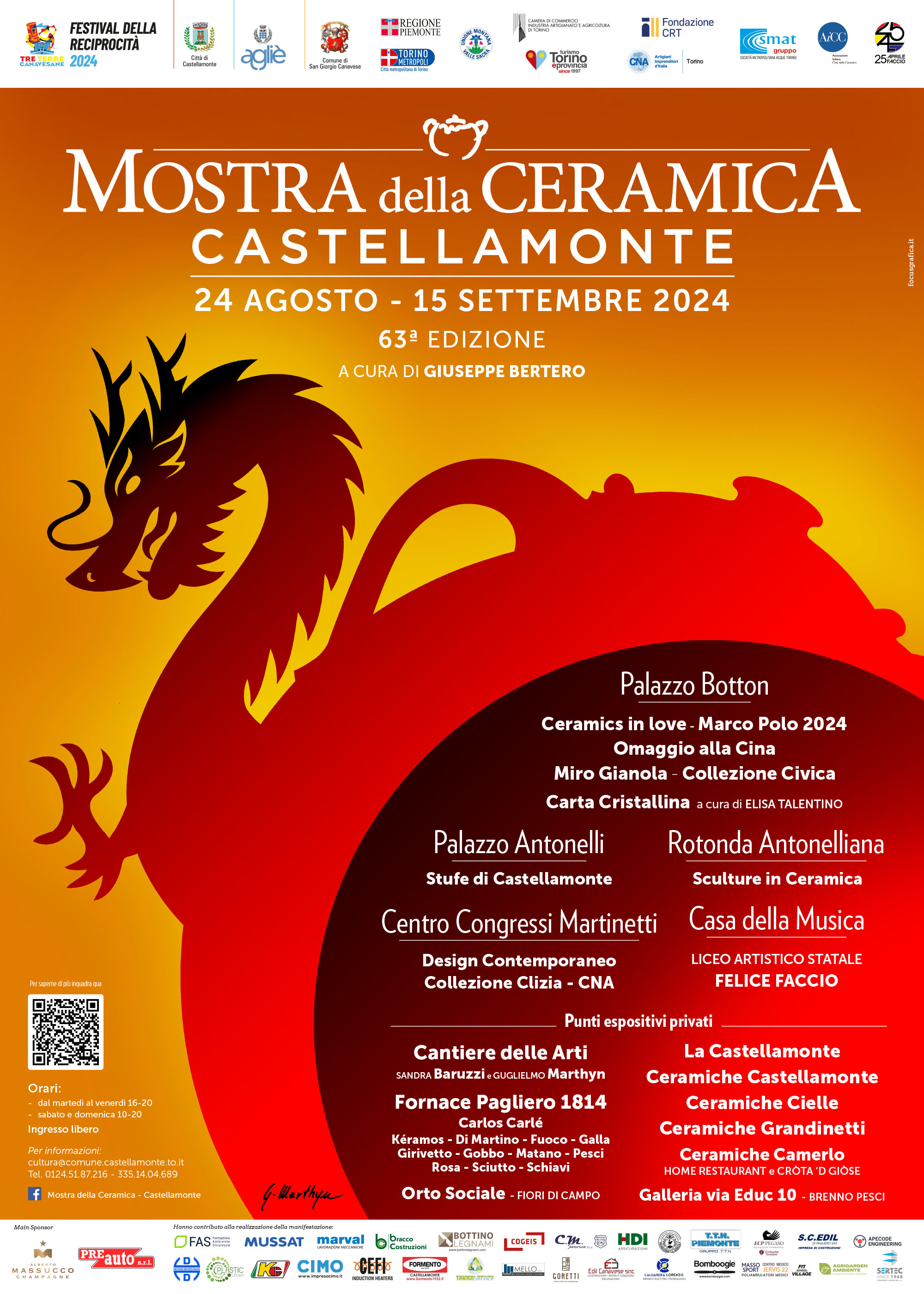 Si comunica che dal 24 agosto al 15 settembre 2024 si terrà la 63^ edizione della Mostra della Ceramica Castellamonte.