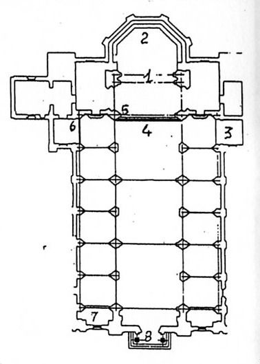 Uscendo, dopo aver ammirato il panorama delle montagne che sembrano venir fuori dalle braccia della Rotonda, con in fondo il campanile romanico che invita guardare in alto, si può ancora ammirare nel timpano (8) della facciata sopra il portale, il Cristo con i Santi Pietro e Paolo in terra rossa castellamontese, opera dell’artista Renzo Igne.