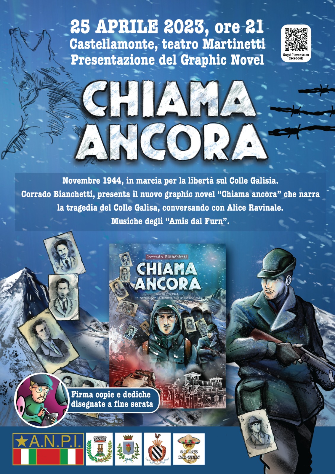 FESTA DELLA LIBERAZIONE: insieme Castellamonte, Cuorgnè e Rivarolo C.se - Martedì 25 Aprile dalle ore 9.30 e alle ore 21,00 al Teatro "P.Martinetti" Corrado BIANCHETTI presenta la sua graphic novel "CHIAMA ANCORA" dedicato alla tragedia del Colle della Galisia