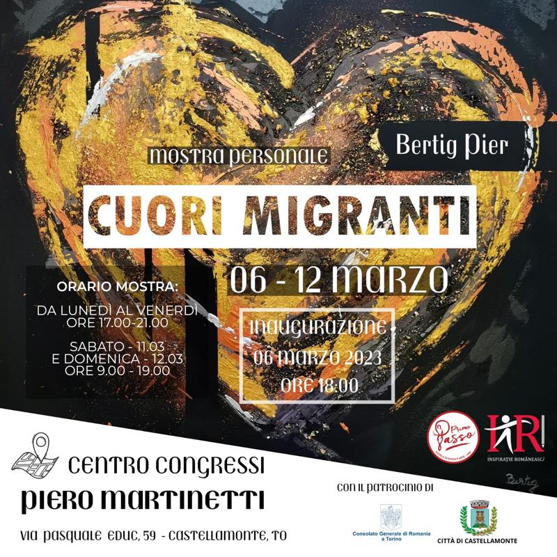 LA MOSTRA DAL TITOLO "CUORI MIGRANTI", PORTA IN ITALIA UN PO' DI ROMANIA, UN PEZZO DEL SIMBOLISMO TRADIZIONALE, UN PEZZO DI CUORE DI CHI LASCIA LA PROPRIA CASA E TROVA UNA NUOVA CASA... COME NEL CASO DI CASTELLAMONTE, DOVE MOLTI CITTADINI ROMENI HANNO TROVATO UNA NUOVA VITA E DOVE IL PITTORE HA VISSUTO PER ANNI.