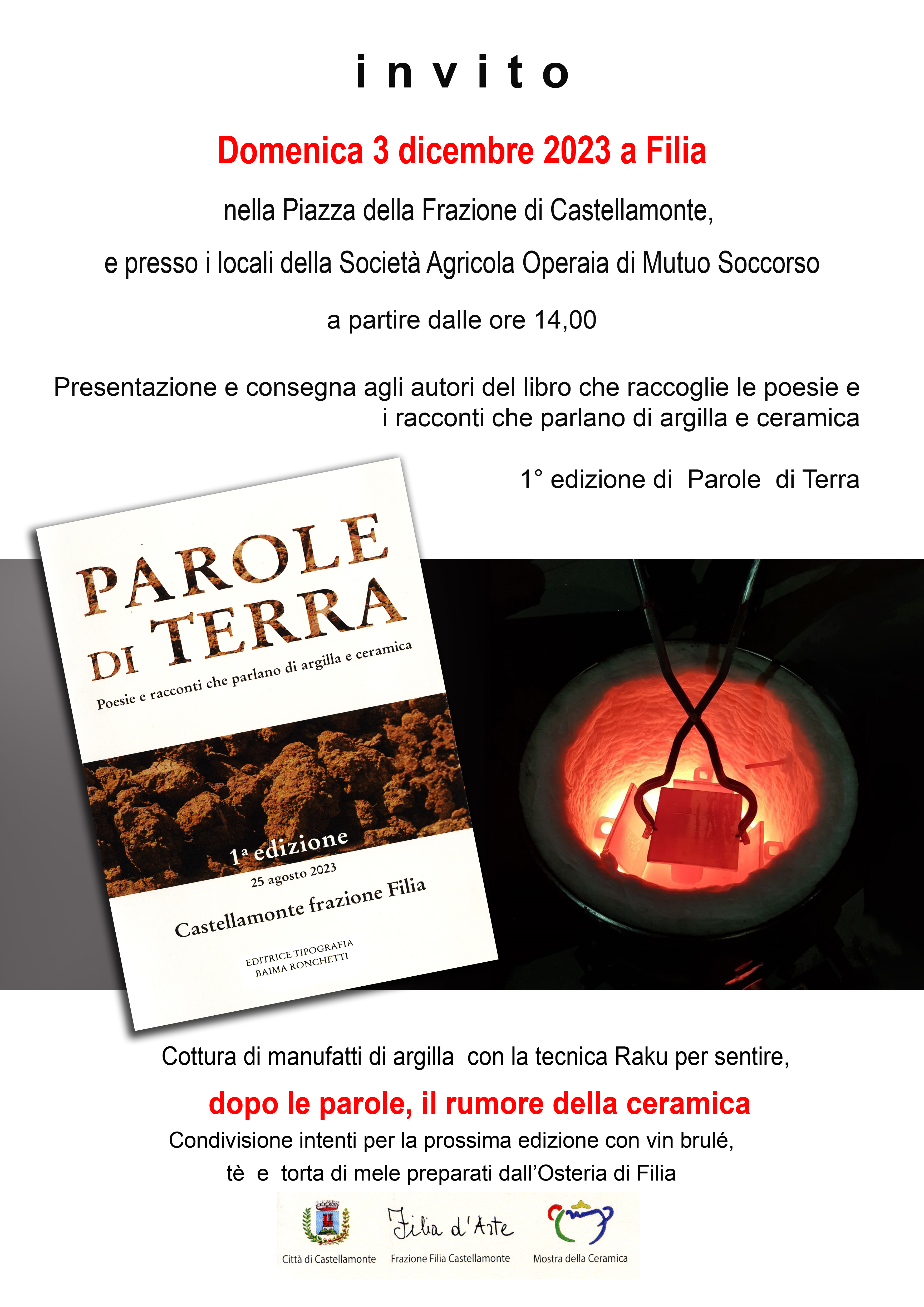 Poesie e racconti che parlano di argilla e ceramica - Presentazione libro 1° edizione di Parole di Terra - Frazione Filia di Castellamonte presso Società Agricola Operaia di Mutuo Soccorso Domenica 3 dicembre dalle ore 14,00 - Editrice Tipografia Baima & Ronchetti