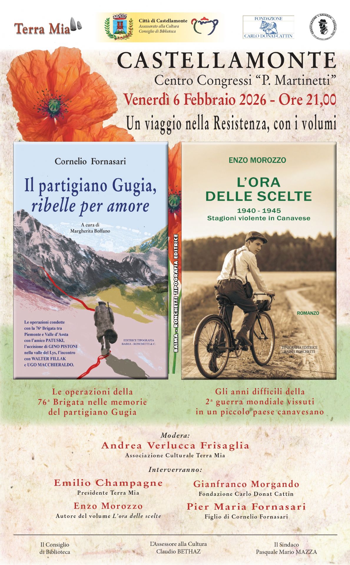 ...con i libri "Il partigiano Gugia, ribelle per amore" (Cornelio Fornasari) e "L'ora delle scelte" (Enzo Morozzo) - Venerdì 6 febbraio 2026 ore 21,00 - Centro Congressi Martinetti